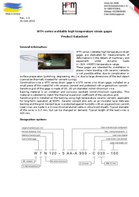 Rev. 1.0 31-Oct-2022 WTN series weldable high temperature strain gages Product Datasheet General information: WTN series weldable high temperature strain gages are dedicated for measurements of…