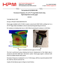 Test protocol #1/120523-001 Resonance frequency of a LPT 2nd stage blade check using high temperature strain gages (extract) Test date May 12, 2023 SG type:…