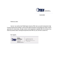 02/22/2024 Reference Letter Here by I can confirm that TUSAŞ Engine Industries (TEI), had a successful training from High Precision Measurements (HPM) LLC that includes high temperature strain…