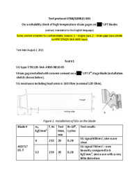 Test protocol #768/020821-001 On workability check of high temperature strain gages on XXX1 LPT blades (extract, translated to the English language) Some content is hidden for confidentiality…