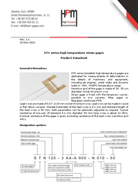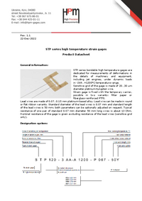 Rev. 1.1 22-Dec-2022 STP series high temperature strain gages Product Datasheet General information: STP series bondable high temperature gages are dedicated for measurements of deformations in the…