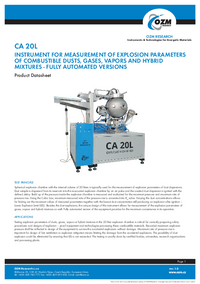OZM RESEARCH Instruments & Technologies for Energetic Materials CA 20L INSTRUMENT FOR MEASUREMENT OF EXPLOSION PARAMETERS OF COMBUSTIBLE DUSTS, GASES, VAPORS AND HYBRID MIXTURES - FULLY AUTOMATED…