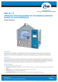 OZM RESEARCH Instruments & Technologies for Energetic Materials MIE–D 1.2 APPARATUS FOR MEASUREMENT OF THE MINIMUM IGNITION ENERGY OF DUST DISPERSIONS Product Datasheet TEST PRINCIPLE The minimum…