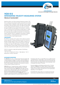 OZM RESEARCH Instruments & Technologies for Energetic Materials VOD 815 DETONATING VELOCITY MEASURING SYSTEM PRODUCT DATASHEET Detonation velocity is one of the most important detonation…