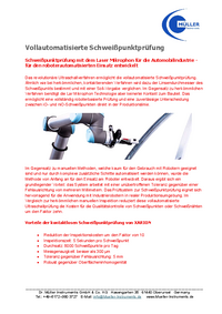 Vollautomatisierte Schweißpunktprüfung Schweißpunktprüfung mit dem Laser Mikrophon für die Automobilindustrie für den roboterautomatisierten Einsatz entwickelt Das revolutionäre Ultraschallverfahren…